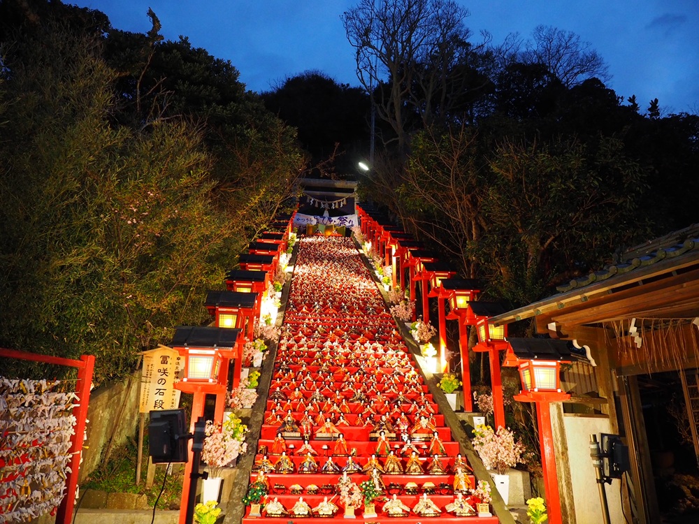 中でも遠見岬神社では、60段の石段に住民が飾り付けた約1,800体のひな人形がずらり!