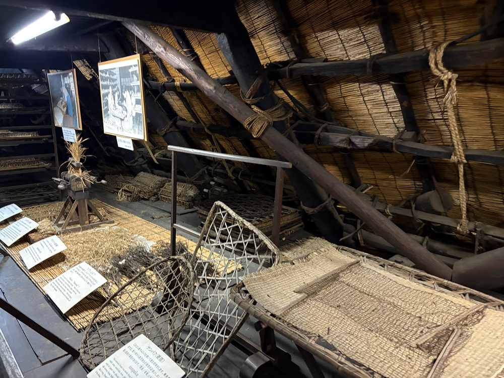 西岡家では中を見学させていただきました。背の高い茅葺民家は2階以上のフロアで養蚕を営んできた家が多くあります。